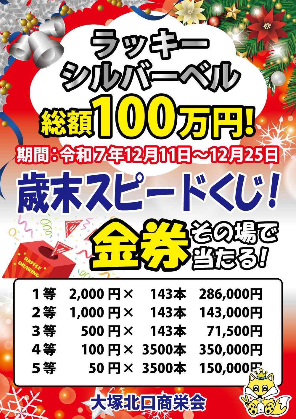 今年も歳末スピードくじセール!を開催いたします。 取扱店舗でお買い物をしたら、その場で金券が当たります。ハズレくじなし!
